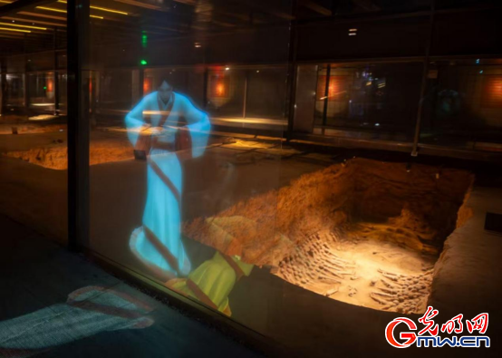 帝陵外藏坑遗址保护展示厅内的姗姗全息投影 光明网记者 李伯玺摄